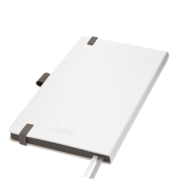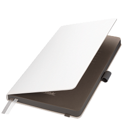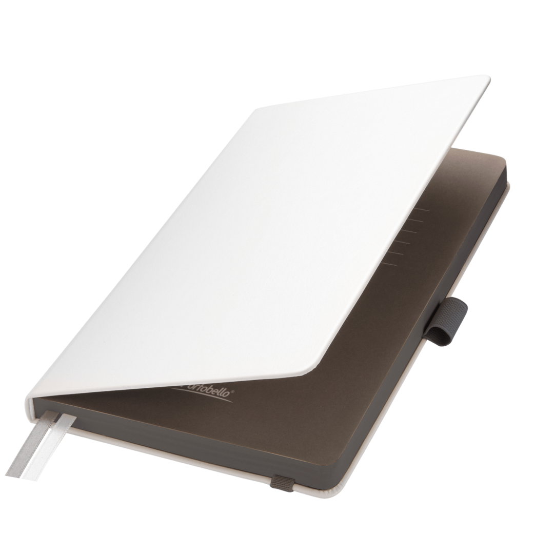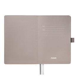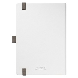 Недатированный ежедневник выполнен в жесткой обложке из искусственной кожи со скругленными уголками. Переплетный материал гладкий, с легкой естественной паутинкой морщин, имеет полуглянцевый блеск. Цвет – чистый белый. Темно-серые матовые форзац и нахзац, а также темно-серый срез блока создают оригинальный динамичный цветовой ансамбль и подчеркивают белизну обложки. Страницы светло-кремового цвета, из гладкого офсета, слегка шелковистые, со скругленными уголками. Добавляют изделию мягкую комфортную теплоту. Двойное атласное ляссе составлено из серой и белой лент. Каждая шириной 6 мм, имеет легкий блеск. Вертикальная фиксирующая резинка прочная, надежная и удобная, в тон срезу. Есть петелька для ручки в тон резинки. Карман на заднем форзаце.