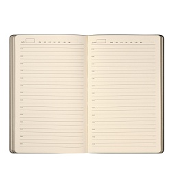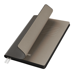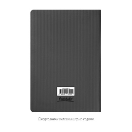 Недатированный ежедневник в стильном лаконичном сером цветовом решении. Цветовая палитра составлена из природных приглушенных тонов. Гибкая матовая обложка со скругленными уголками выполнена из искусственной кожи, имитирующей покрытие в стиле Hi-Tech. Переплетный материал с вертикальным рифлением, бархатистый, со слегка прорезиненным эффектом. За счет интересной рельефной фактуры прослеживается игра цвета при перемене освещения. Цвет – темно-серый, плотный, однородный. Создает органичный тандем с матовыми форзацем и нахзацем серого цвета. Срез матовый, в тон обложки. Страницы со скругленными уголками приятного глазу теплого светло-кремового цвета. Выполнены из гладкого шелковистого офсета. Ежедневник дополнен двойным атласным ляссе из лент серого цвета, имеющих глянцевый отлив. Упаковка: нет (без упаковки, без стикеров).