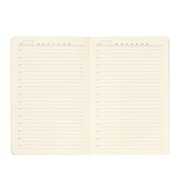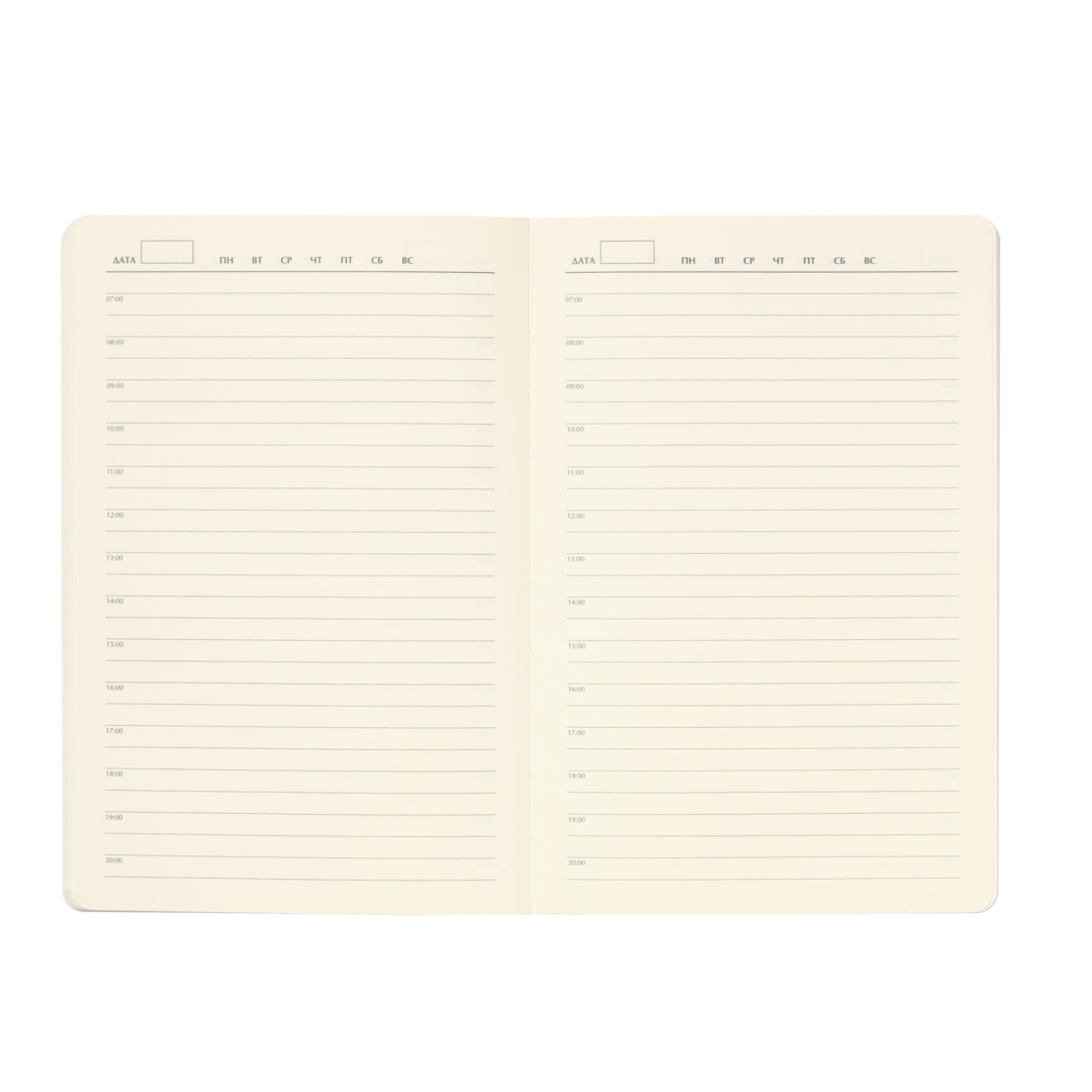 Внутри — страницы теплого светло-кремового оттенка из гладкого шелковистого офсета со скругленными уголками, которые обеспечивают комфортное письмо. Элегантное атласное ляссе с легким глянцем служит изысканным акцентом.