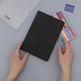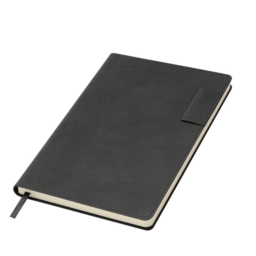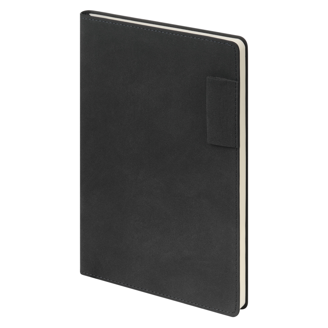 Мягкий на ощупь материал с мелкими вкраплениями имитирует натуральную замшу, а петелька для ручки добавляет практичности. Сдержанные оттенки обложки, форзаца и нахзаца гармонично сочетаются между собой.