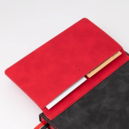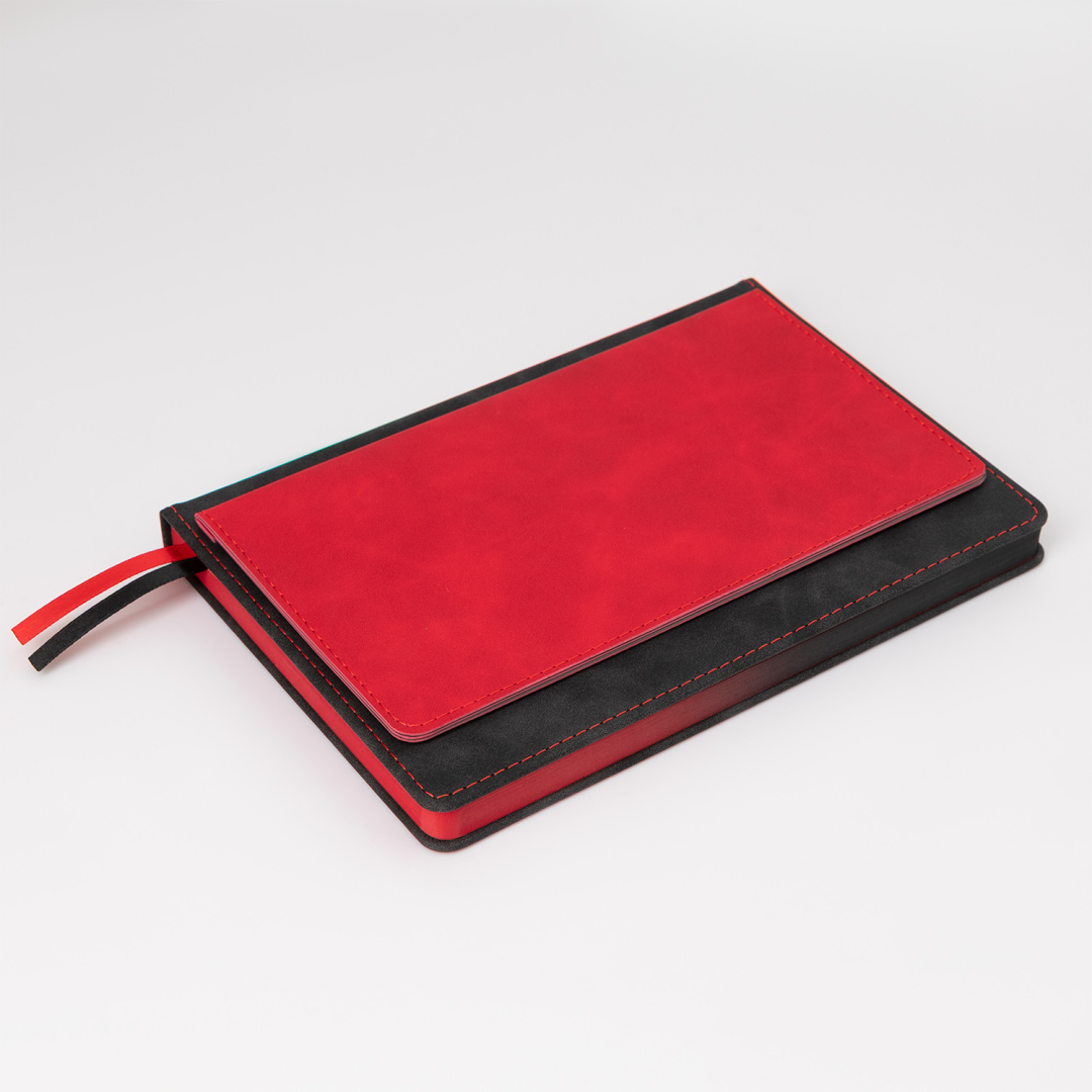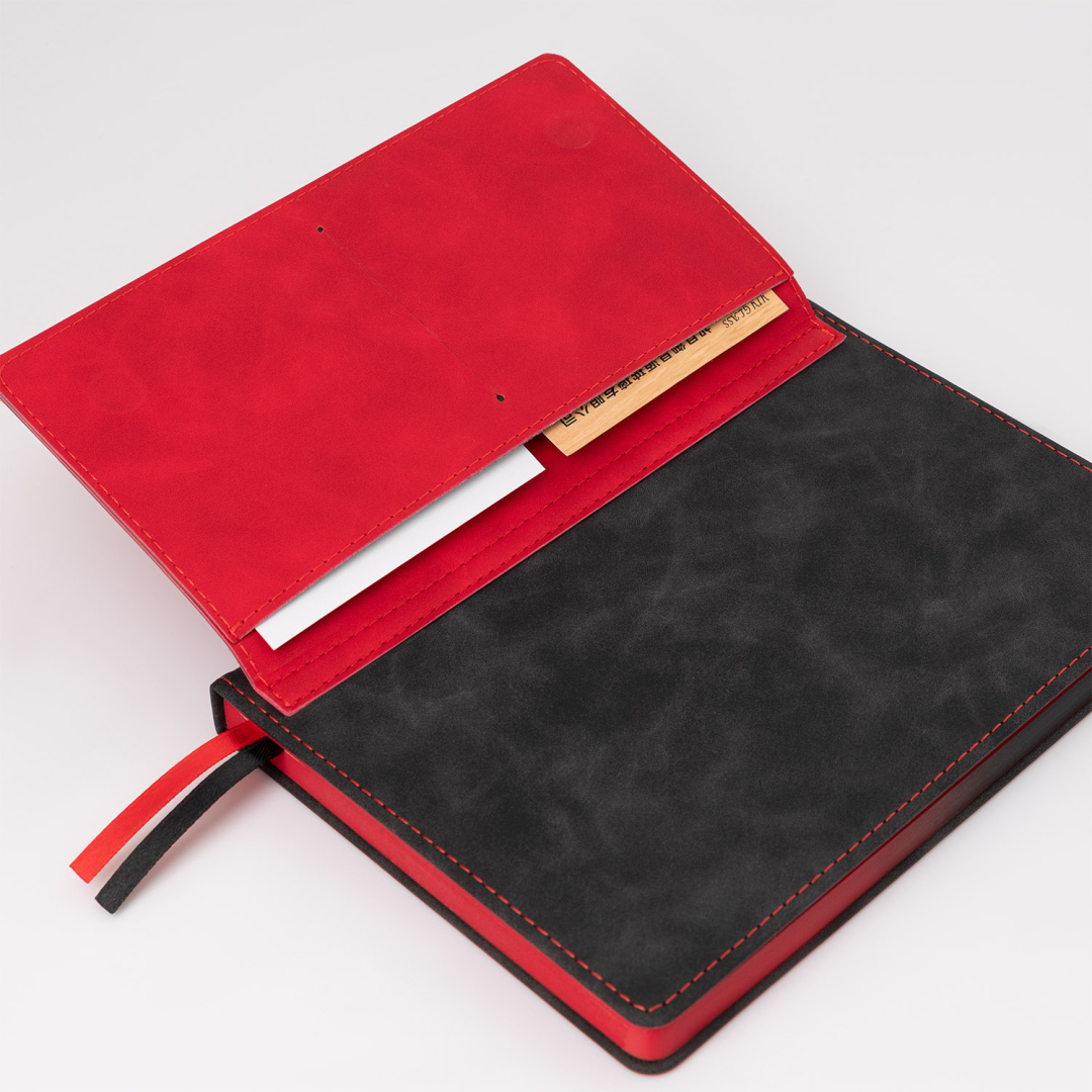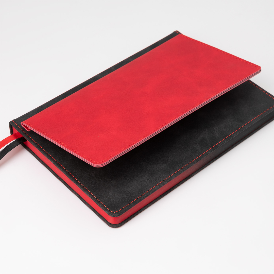 Обложка жесткая с пришивным магнитным клапаном Imperial – искусственная кожа Verona черная и красная
