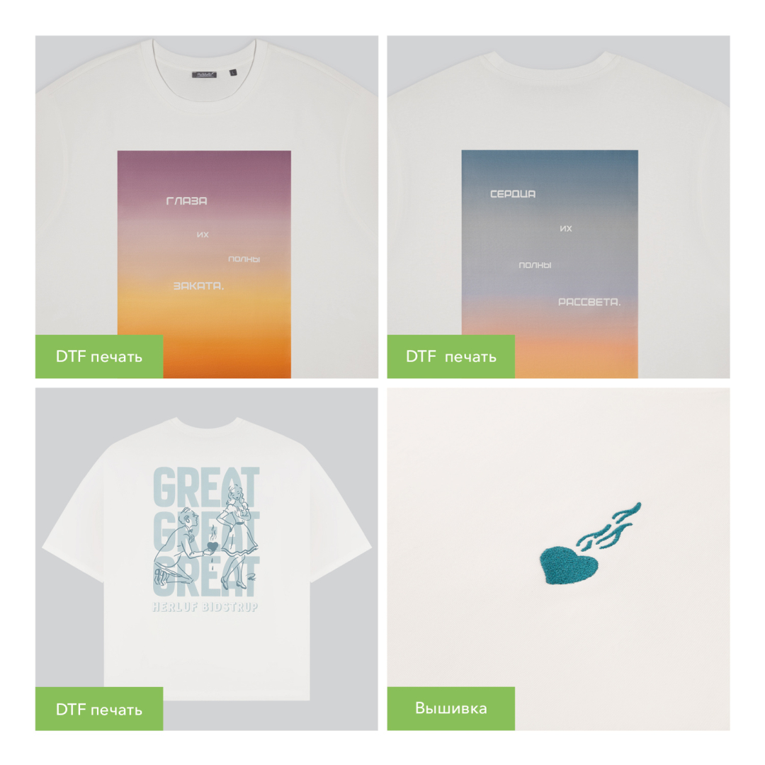 - Брендирование Flex на футболку, Вышивка, Лейбл, Термотрансфер DTF, Тканевая наклейка, Флекстран(расчет индивидуальный), Шелкография, Шелкография на пакет со слайдером