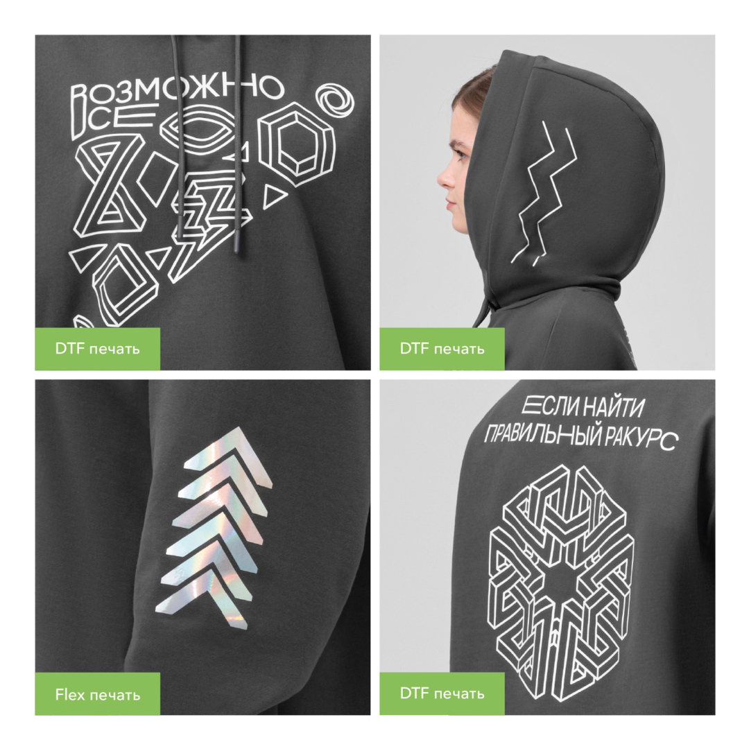 - Брендирование Flex на худи, Вышивка, Замена шнура, Лейбл, Термотрансфер DTF, Тканевая наклейка, Флекстран(расчет индивидуальный), Шелкография на пакет со слайдером