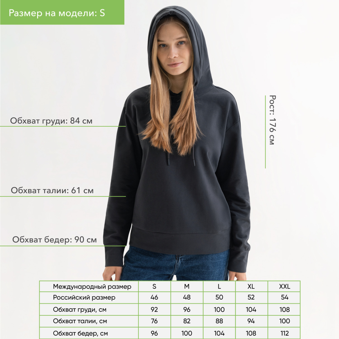 Худи с капюшоном, унисекс Алекс (Alex) антрацит, размер L