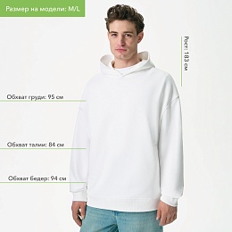 Модель выполнена из высококачественного хлопкового футера плотностью 380 г/м. Объёмная, но мягкая ткань комфортна для ежедневной носки.