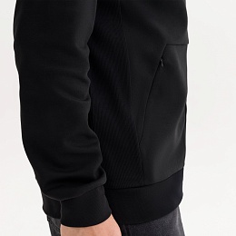 Толстовка сделана из мягкой и прочной ткани интерлок "doubleface", которая приятна к телу и легка в уходе, не растягивается, не выцветает и не деформируется после стирки. Манжеты и низ сделаны из плотной резинки 1х1, благодаря чему вещь держит форму. Карманы на потайных молниях придают толстовке аккуратный вид. Капюшон на подкладке в тон регулируется шнурками.