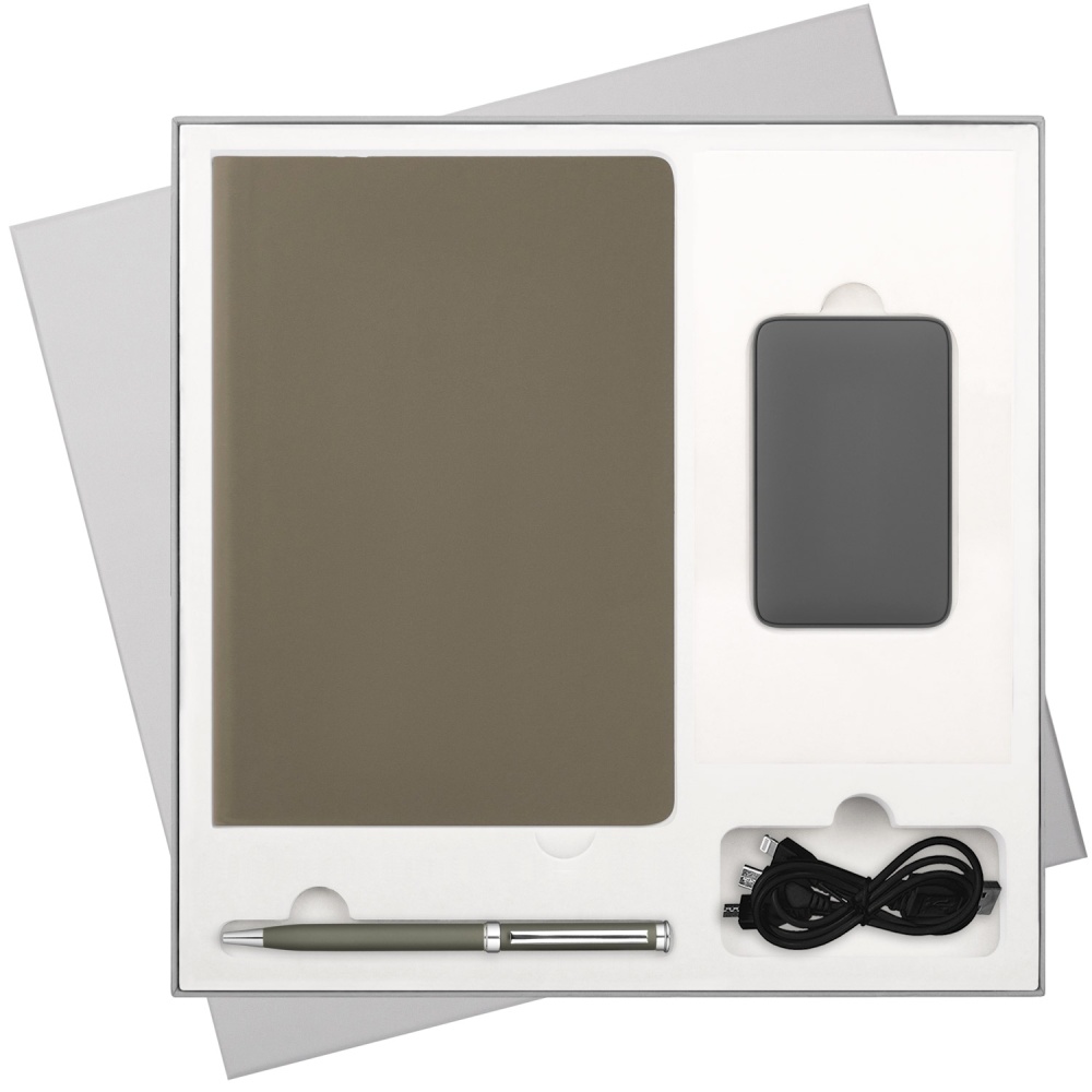 Подарочный набор Спарк (Spark), серый (ежедневник, ручка, аккумулятор)