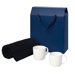 Подарочный набор Дафна (Dafna), Фадо (Fado), темно-сиий в коробке-пакете (две фарфоровых кружки, плед)