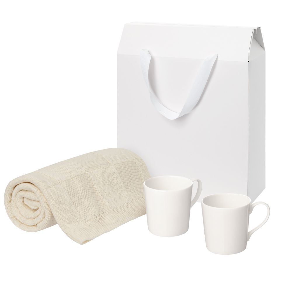 Подарочный набор Сиена (Siena), Селла (Cella), бежевый в коробке-пакете (две фарфоровых кружки, плед)