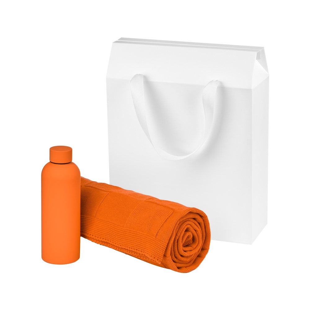 Подарочный набор Прима (Prima), оранжевый (термобутылка, плед)