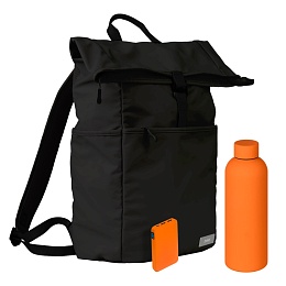 Подарочный набор Бостон (Boston), черный/оранжевый (термобутылка, ЗУ, рюкзак)