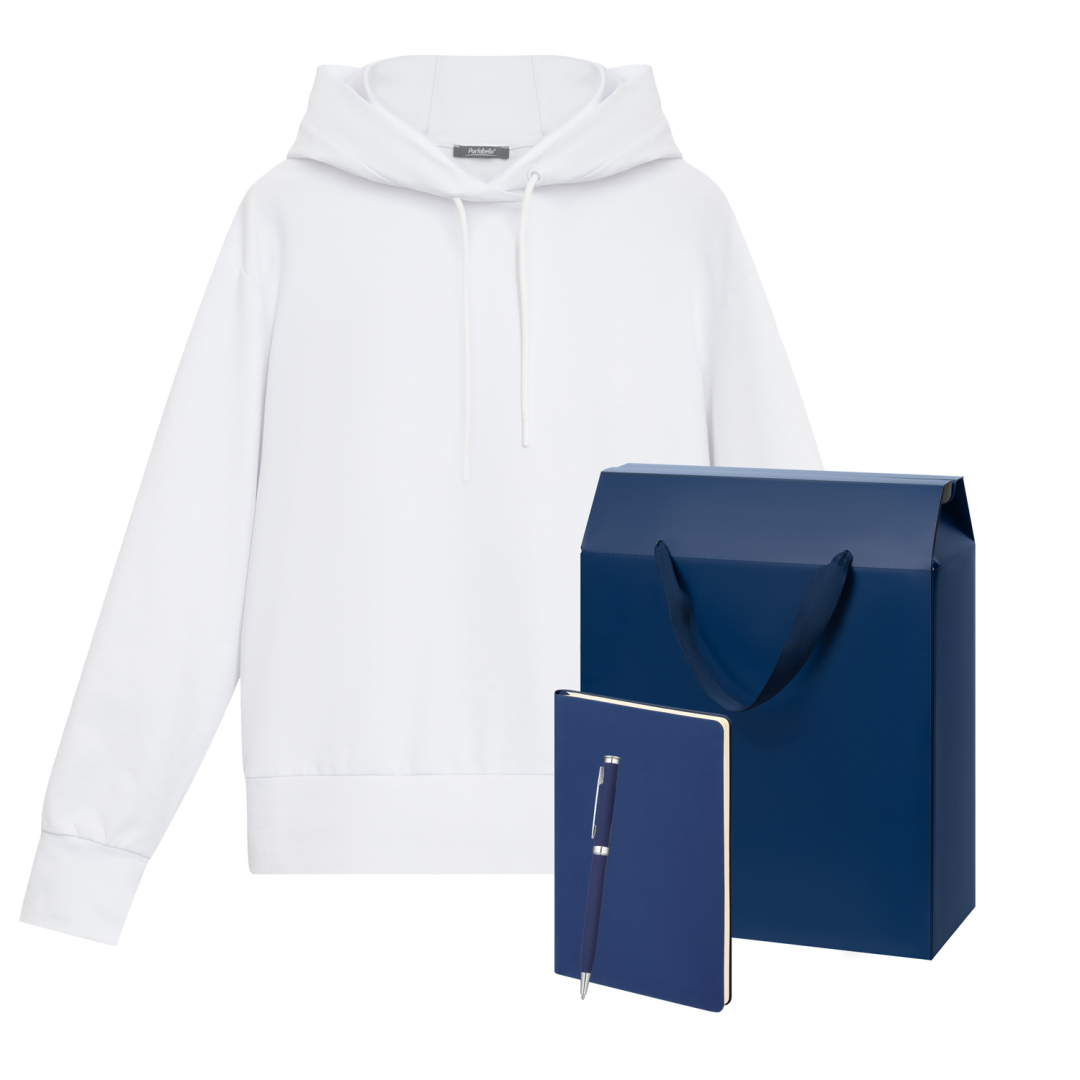 Набор с одеждой Алекс (Alex) (худи, ежедневник, ручка), белый/синий, M