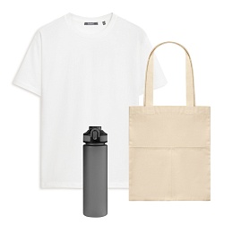 Набор с одеждой Крис (KRIS) (футболка, бутылка, шоппер), белый/серый, M