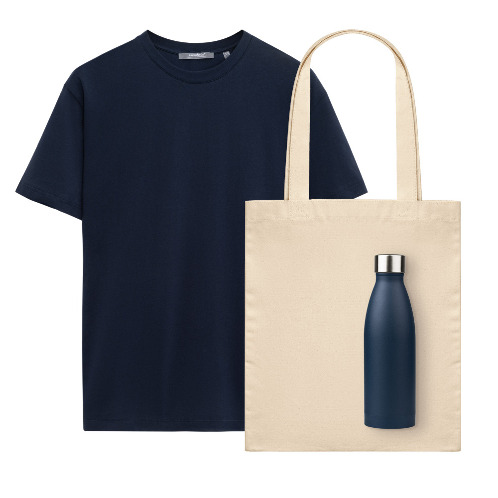 Набор с одеждой Крис (KRIS) (футболка, термобутылка, шоппер), синий, XL