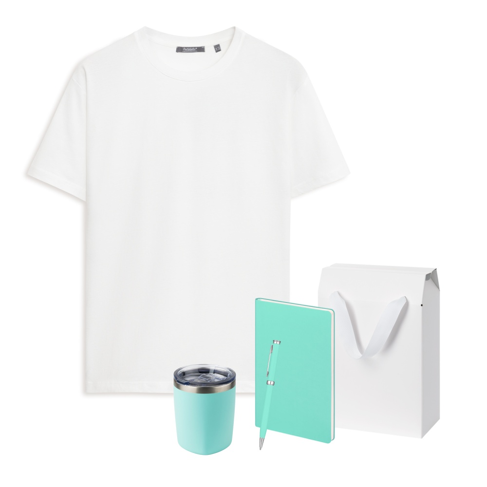 Набор с одеждой Крис (Kris) (футболка, термокружка, ежедневник, ручка), мятный/аква, S