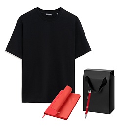 Набор с одеждой Раст (Rust) (футболка, ежедневник, ручка), красный/черный, M