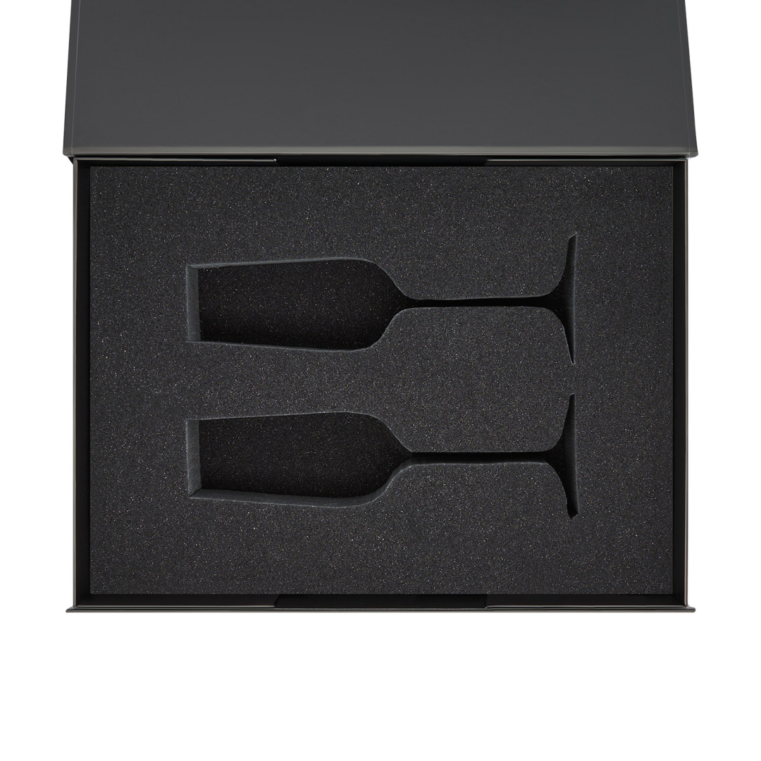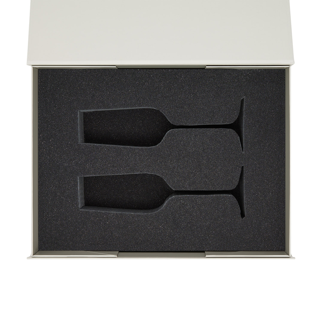 Идеальное решение для надежной и стильной упаковки двух бокалов для шампанского.