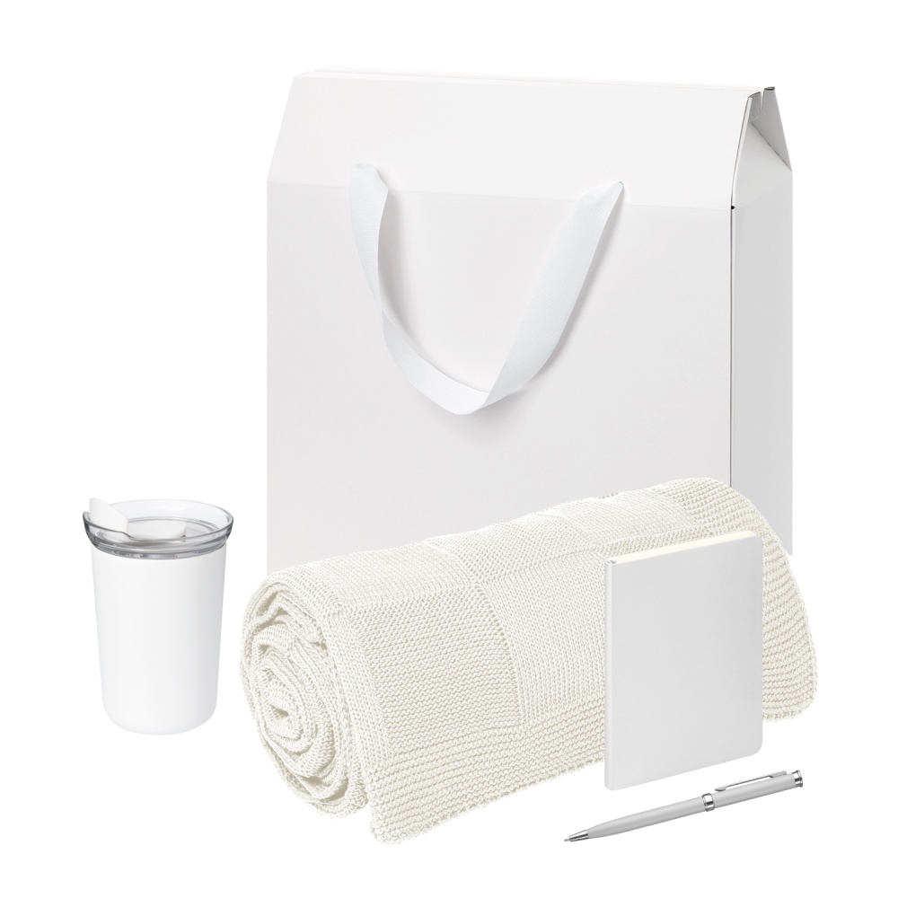 Подарочный набор Велком Пак Спарк мини (Welcome Pack Spark mini), серебряный (термокружка, блокнот, ручка, плед, коробка-пакет)