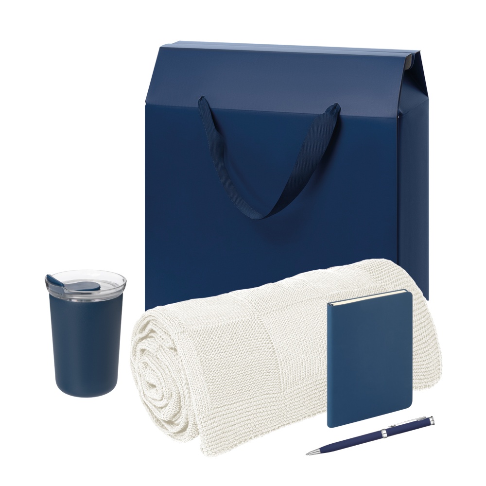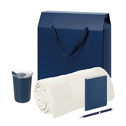 Подарочный набор Велком Пак Спарк мини (Welcome Pack Spark mini), синий (термокружка, блокнот, ручка, плед, коробка-пакет)