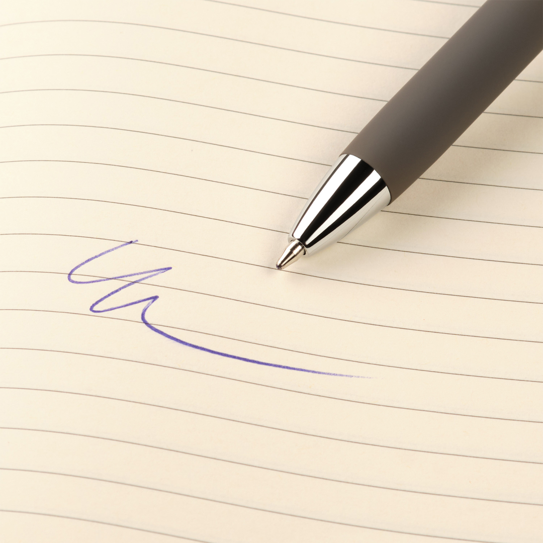Шариковая ручка с нажимным механизмом и покрытием Soft-touch, которую приятно держать и использовать.