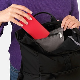 Рюкзак имеет вместительное внутреннее отделение, с внешней стороны рюкзака предусмотрен удобный карман на молнии. С двух сторон рюкзака также располагаются два внешних кармана — для зонта или бутылки с водой. Рюкзак имеет две мягкие регулируемые лямки, которые равномерно распределяют вес содержимого по всей спине и плечам. В основном отделении расположен карман для 15,6-дюймового ноутбука и кармашек для мелочей на молнии.