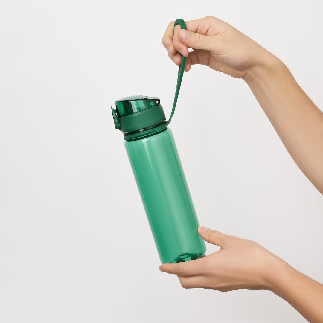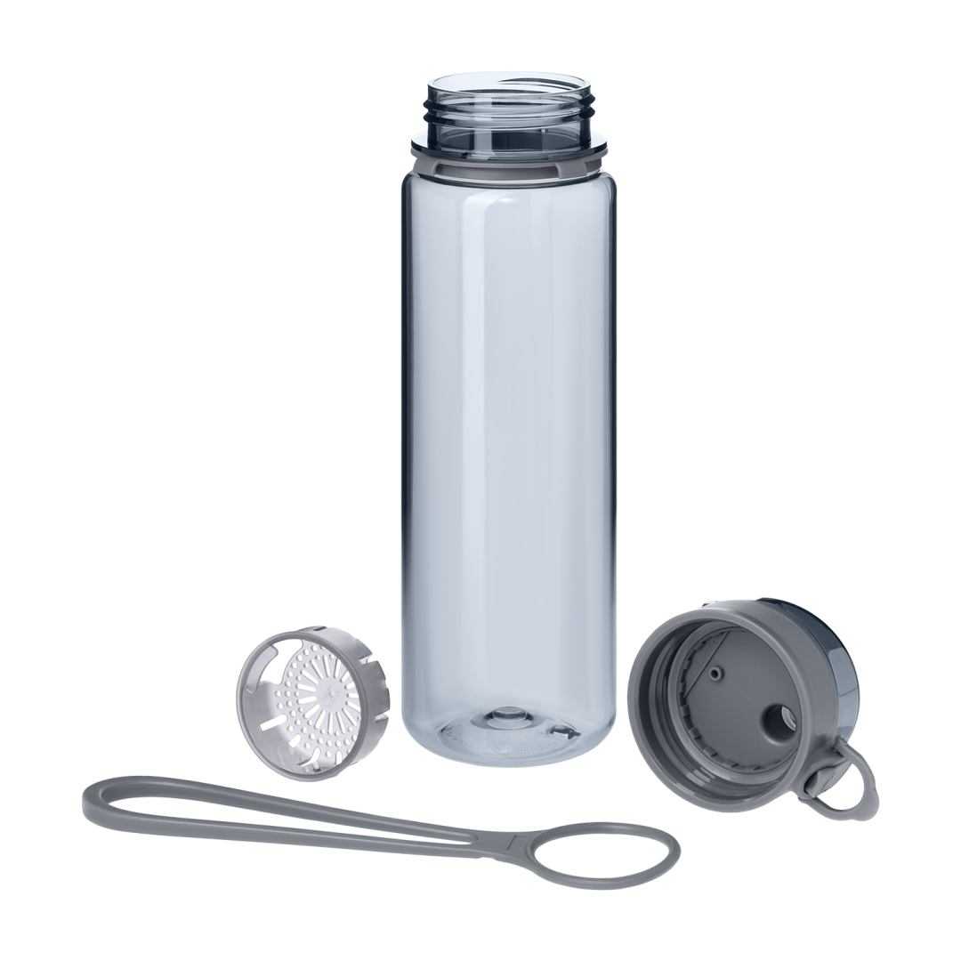 Прочная и легкая, она изготовлена из экологичного пластика без содержания БФА — идеально для тех, кто заботится о здоровье и окружающей среде. Удобная крышка с фиксатором клапана надежно защищает от протекания и случайного открытия, а ремешок-петля удобен для переноски — в спортзале и в повседневных делах.