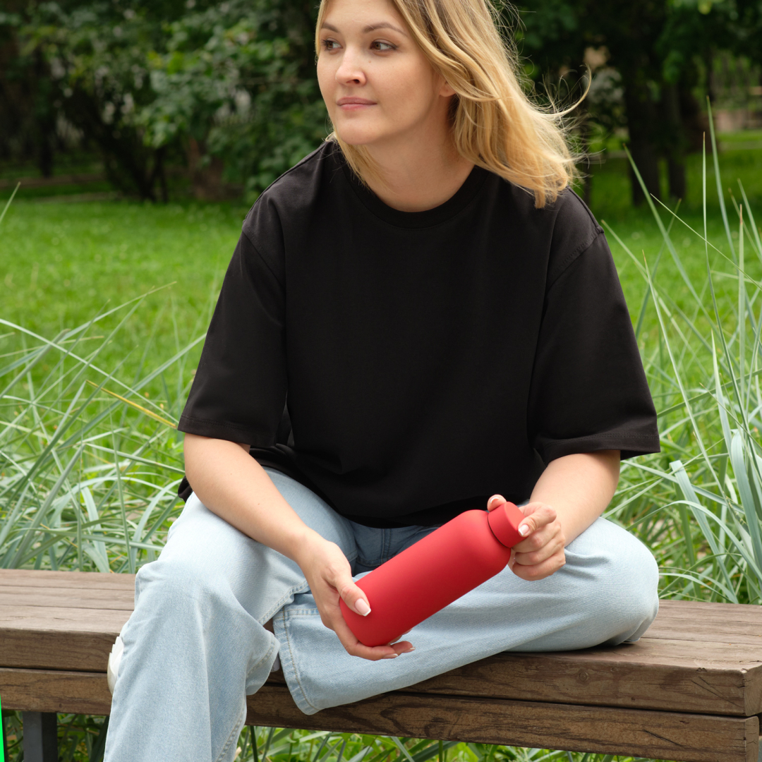 Надежная, завинчивающаяся крышка, бутылку можно переворачивать и класть в сумку.