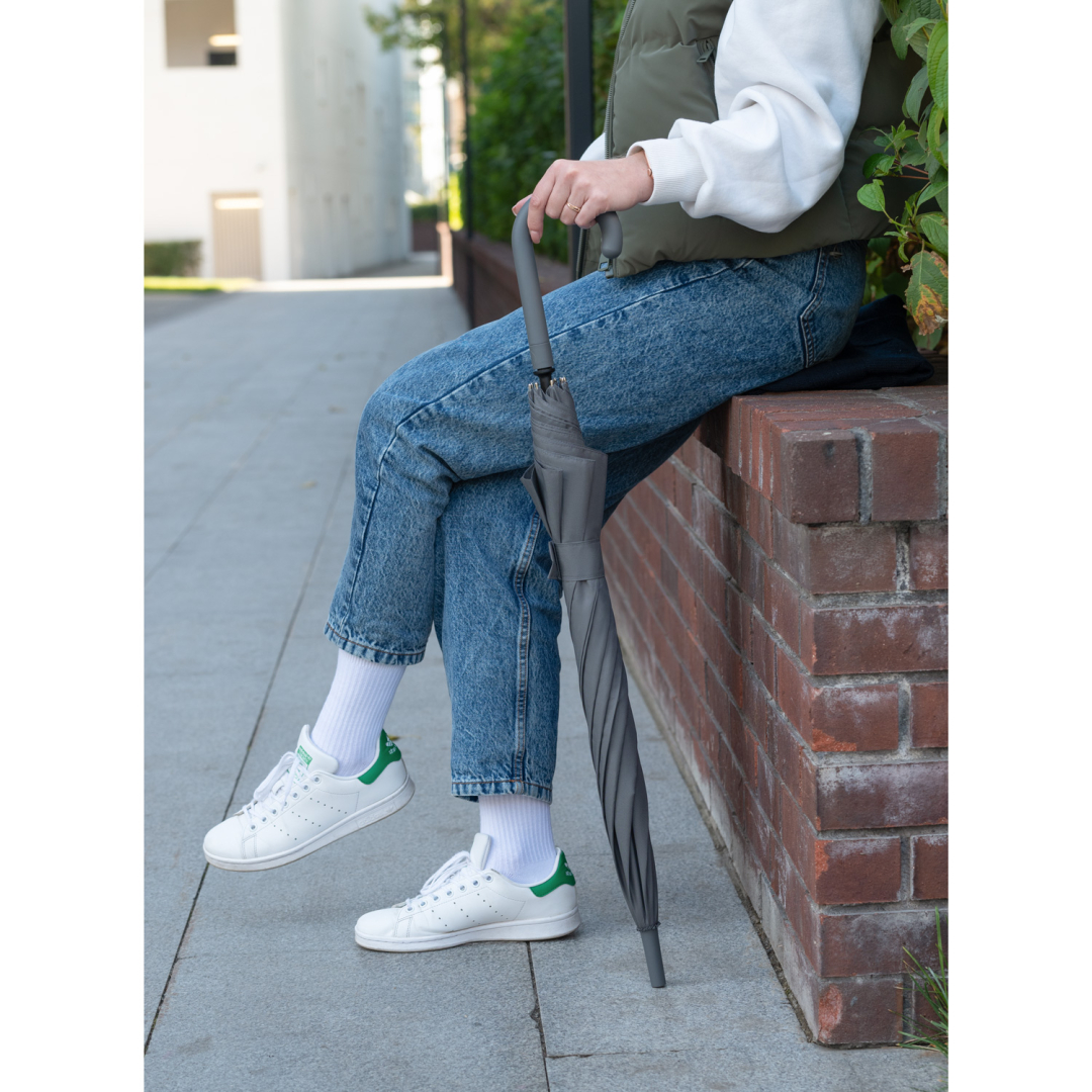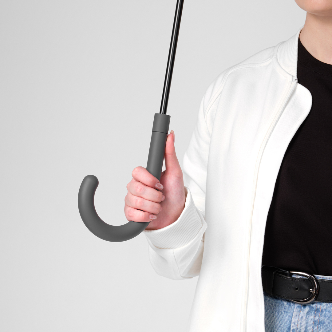 Удобная ручка в цвет купола зонта. PU-покрытие на ручке зонта обеспечивает комфортное и долговечное использование аксессуара: оно устойчиво к истиранию, не скользит в руке и не становится липким.
